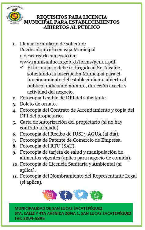 - Reglamento para la Disposición, Administración y Conservación de Información Electrónica y Registros Informáticos de la Municipalidad de San Lucas Sacatepéquez